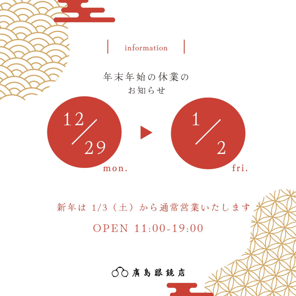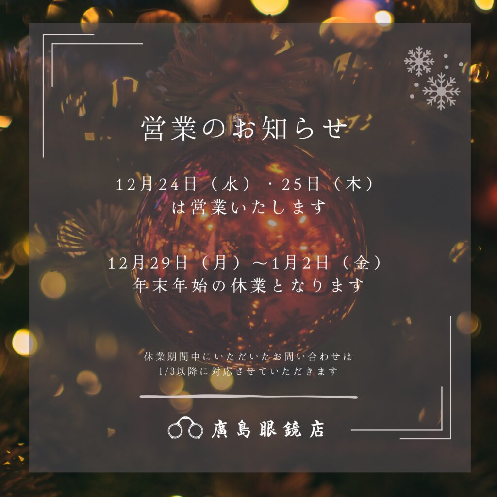 12月の営業日の変更とともに、年末年始の休業日のお知らせをいたします。