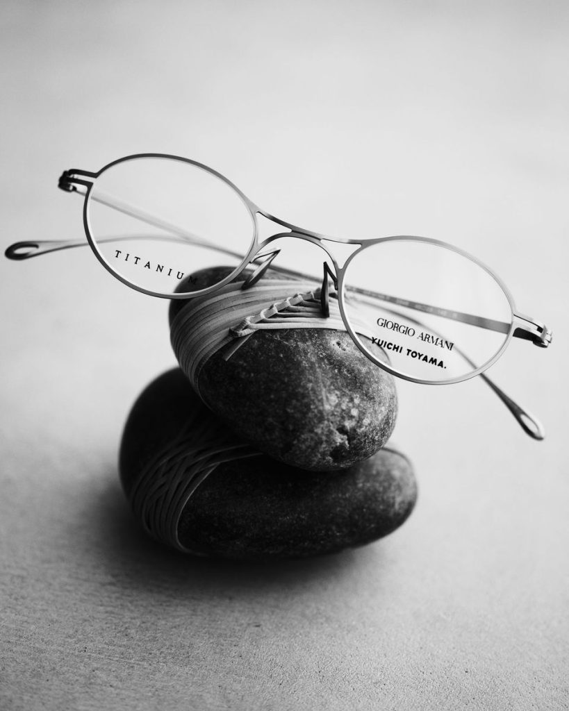 「GIORGIO ARMANI」のイタリアンクラシックと「YUICHIO TOYAMA.」の “ダブルダッチ” の融合が、アイウェアの機能美の魅力を引き出し、かつ個性的でミニマルなシルエットを生み出しました。