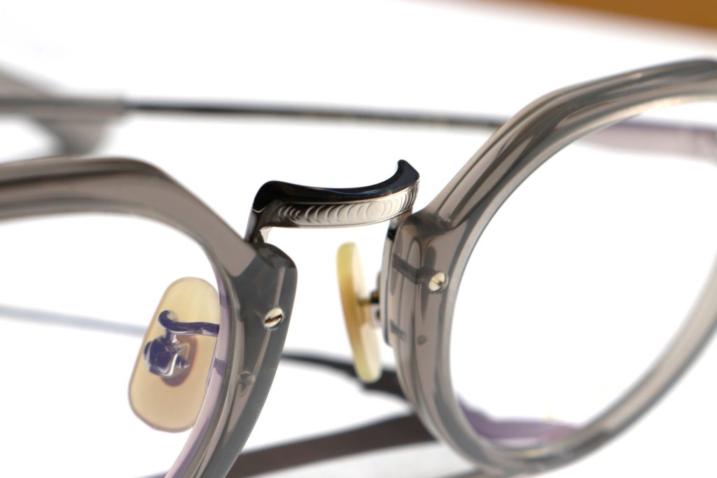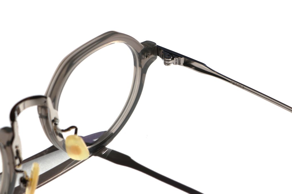 4mm厚のアセテート製生地を用いすっきりとした厚みのリムは、そのクラウンパントシェイプを継承しながらコロッとした「クラウンラウンド」シェイプで柔らかな風合いを表現しています。