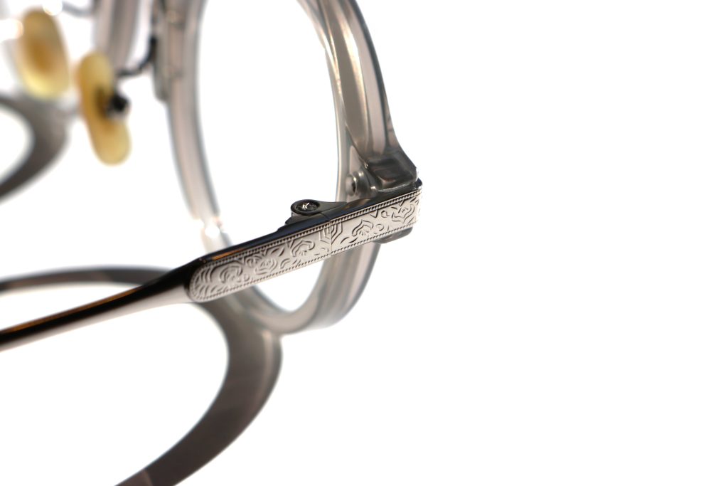 高くせりあがったブリッジ、ヨロイからテンプルにかけてのメタルパーツそれぞれに、エングレービング加工がなされた、注目のディテールも健在です。
