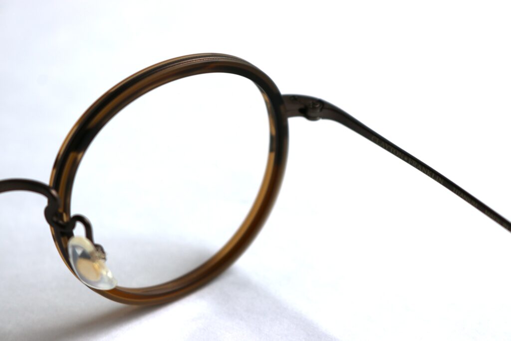 メタル素材はチタニウム(チタン)製になっており、軽量でしなやかな弾力をもつβチタニウム(チタン合金)と組み合わせることで、耐久性とともに掛け心地のよいフィット感も感じていただけるはず。