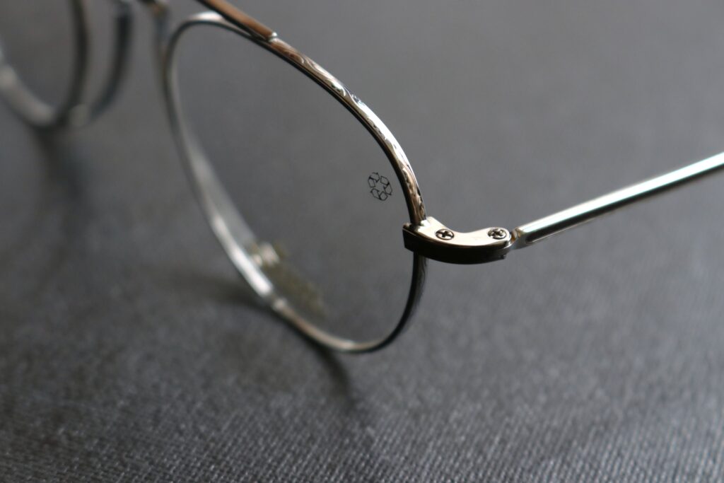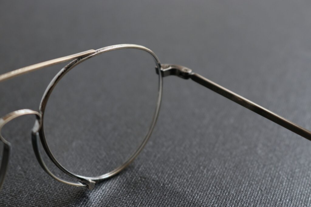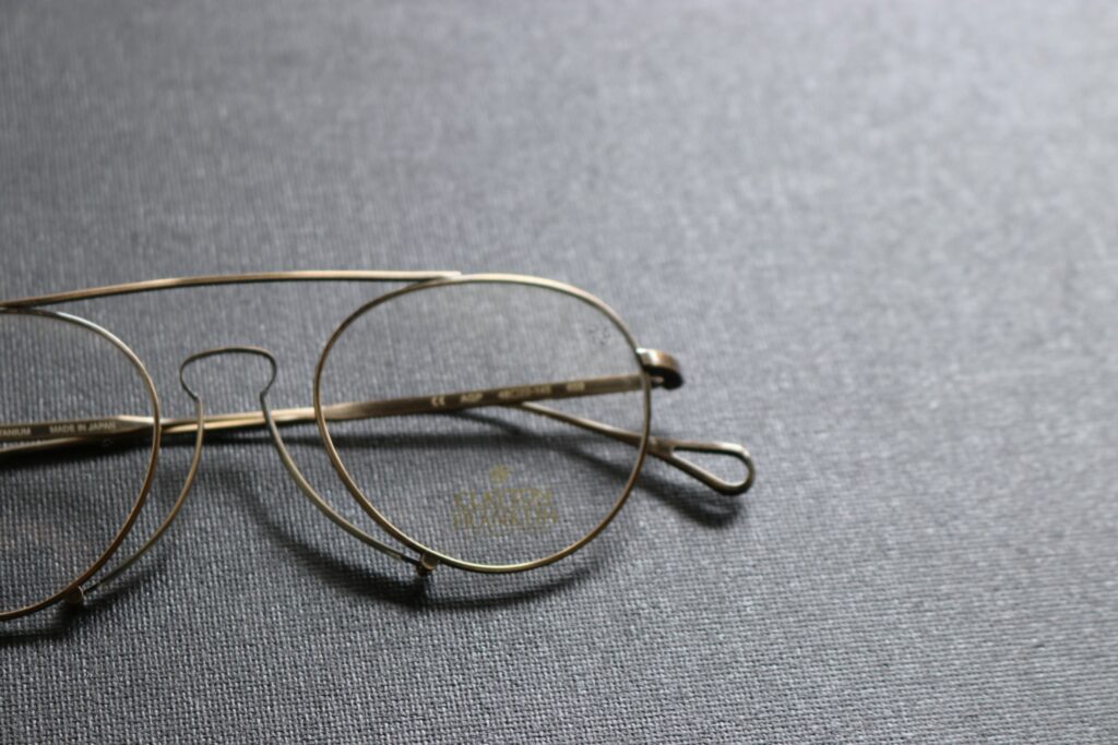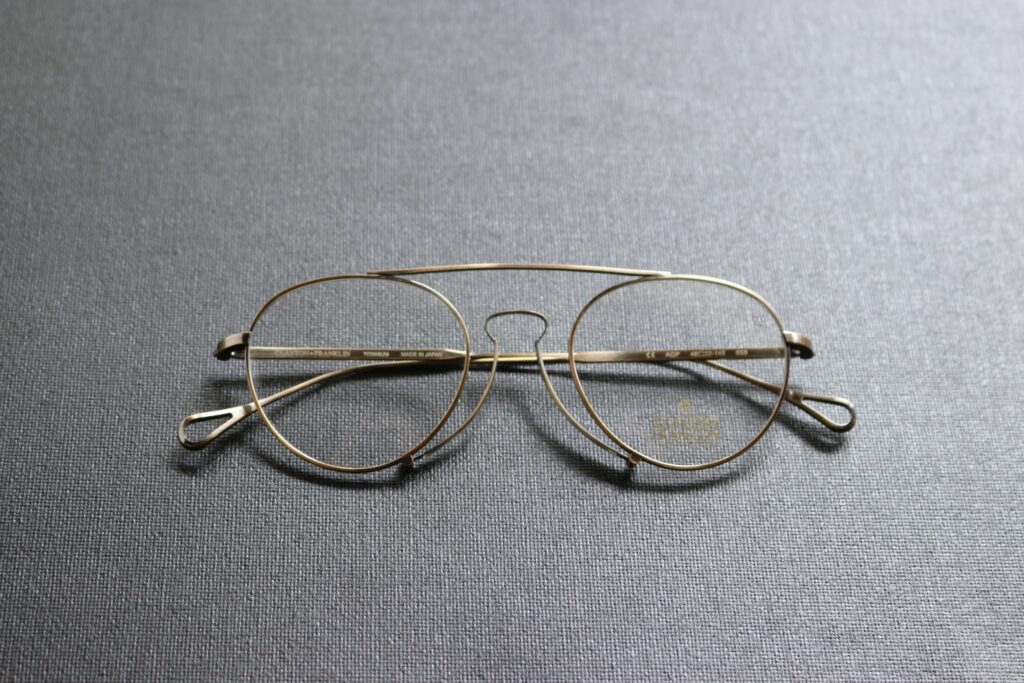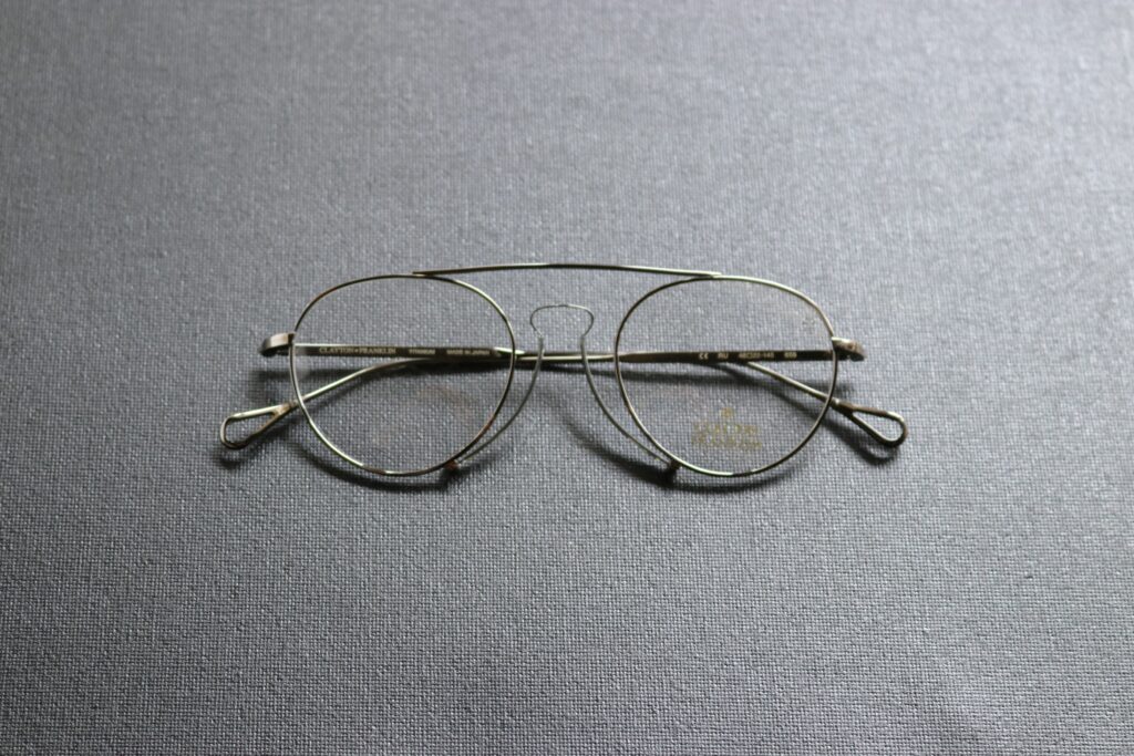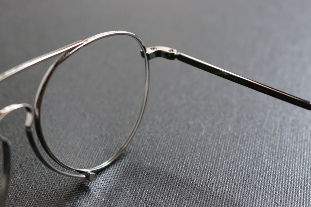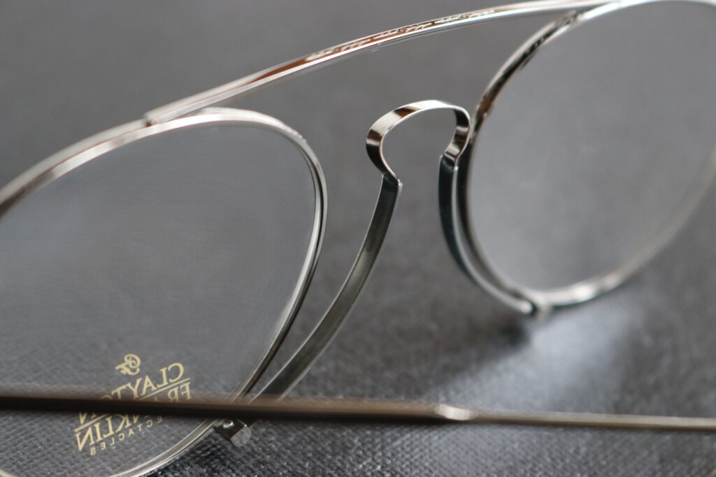 このような新しいアイデアをスタイルに落とし込み、実用性も兼ね備えながらデザインされる様は、現代のメガネではあるものの、まさにアンティークグラスの楽しみの神髄を感じさせてくれる一本です。