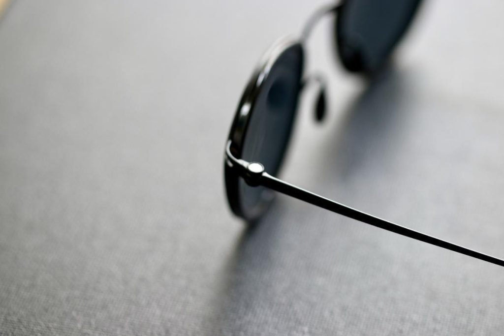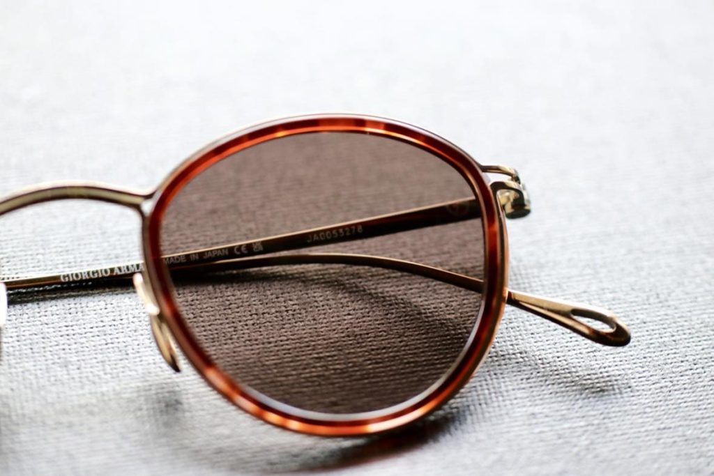 テンプル丁番部分とレンズにはYTロゴとGAロゴがあしらわれ、ユウイチトヤマとジョルジオアルマーニのミニマリズムを感じられる一本です。