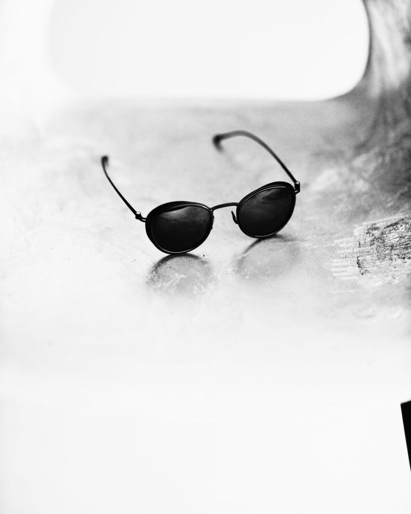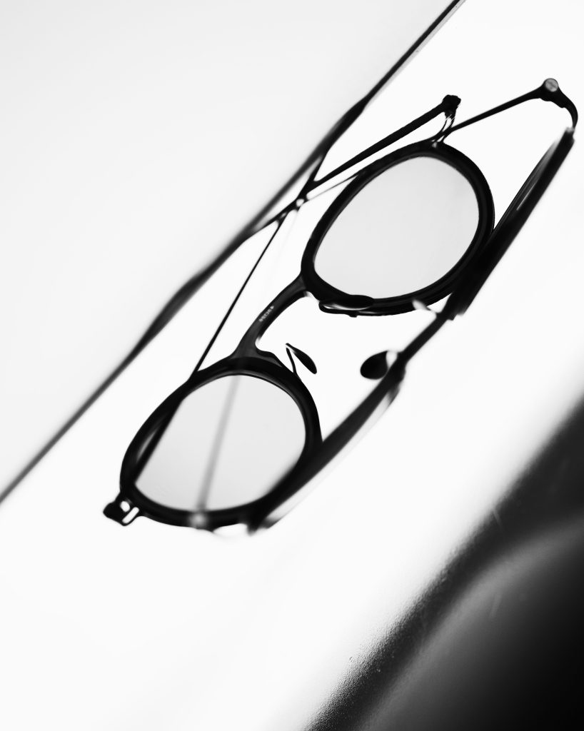 安藤建築の特徴でもある幾何学的な造形のコンクリートに差し込む陽は影(Shadow/Black)を際立たせ、その調和が、アイウェアの繊細な美しさを一層際立たせています。