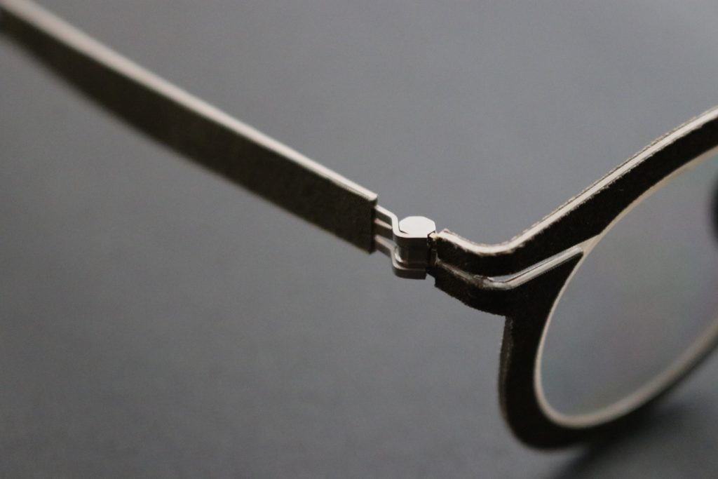 これまでおよそアイウェアに用いられるなど想像もできなかったこれらの素材は、その表面の非常に細かくランダムな凹凸により生まれる絶妙な艶消し具合によって、インパクトがありながらも同時に意外と肌馴染みが良いという唯一無二な質感を実現しています。