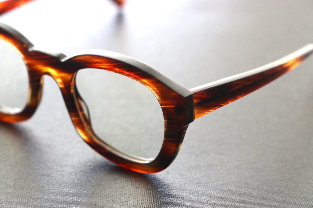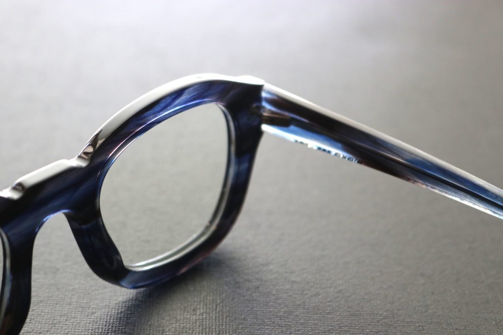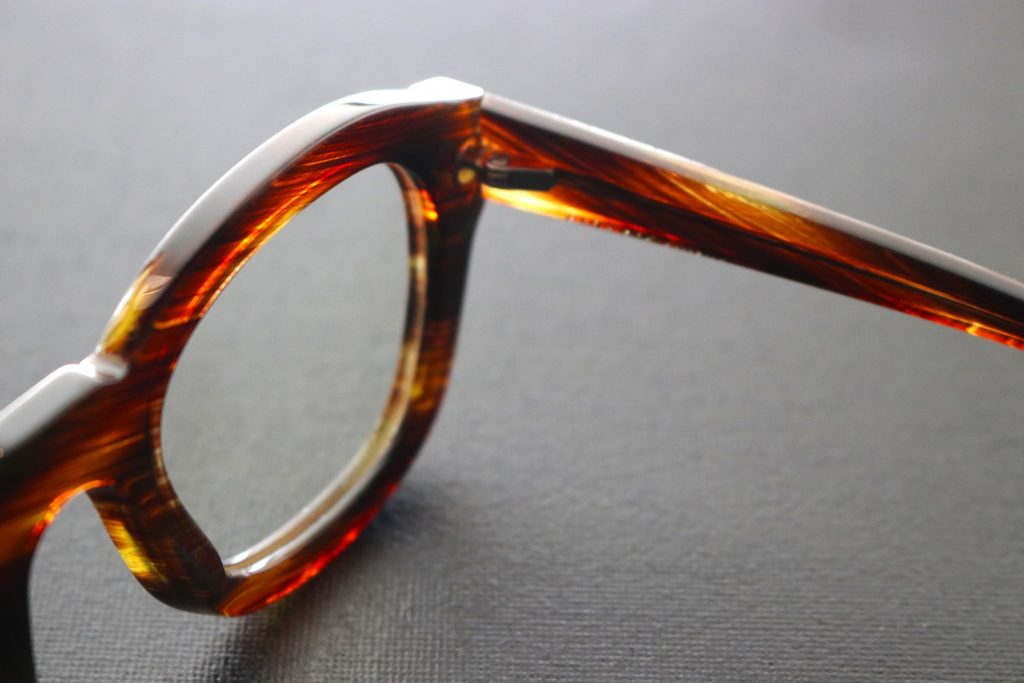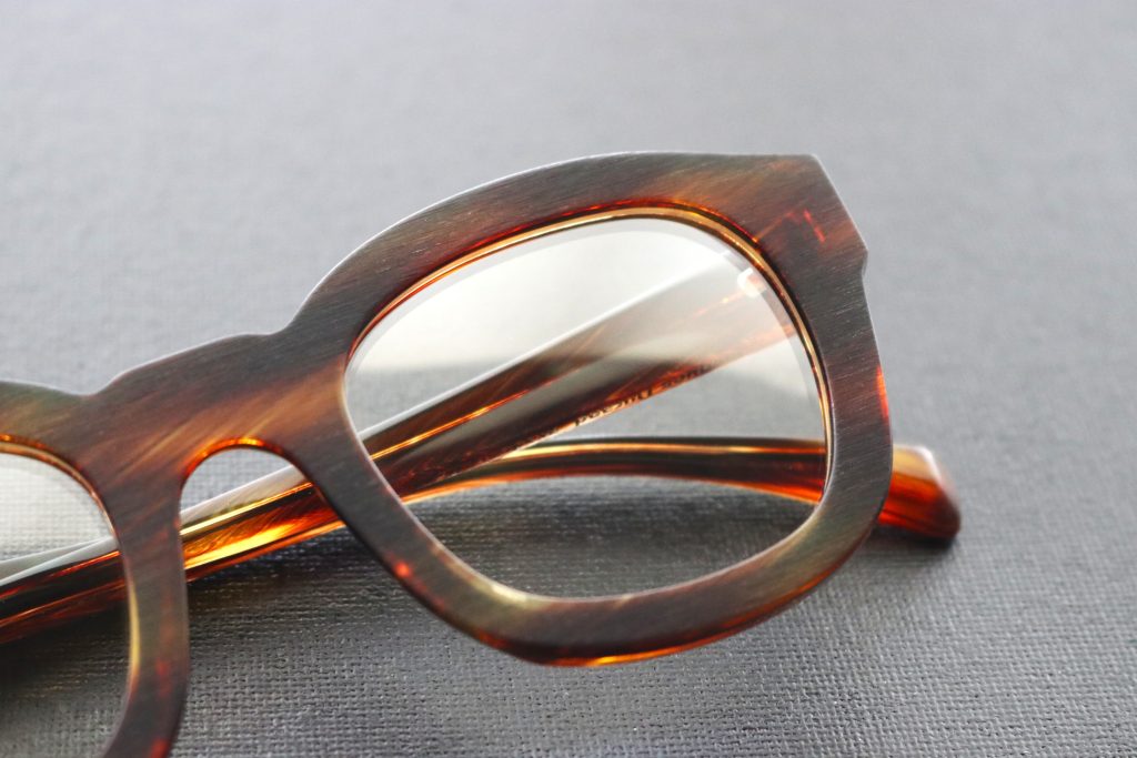 また、メガネ自体の美しさを損なうことのないよう刻印はテンプル下に入っており、細部にまで気を遣うデザイナーのこだわりを垣間見ることができます。
