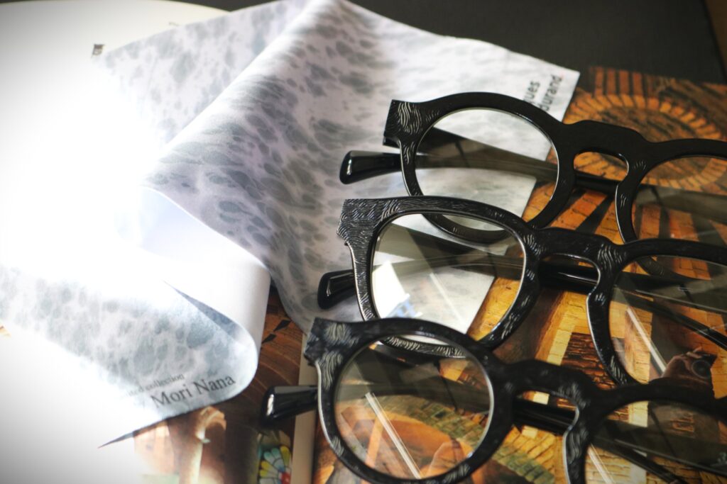 jacques durand.のコンセプト、Timelessとも共鳴する森氏の作品を、ミニマルかつエッジィな世界のアイウェアに落とし込んだ特別なものとなりました。