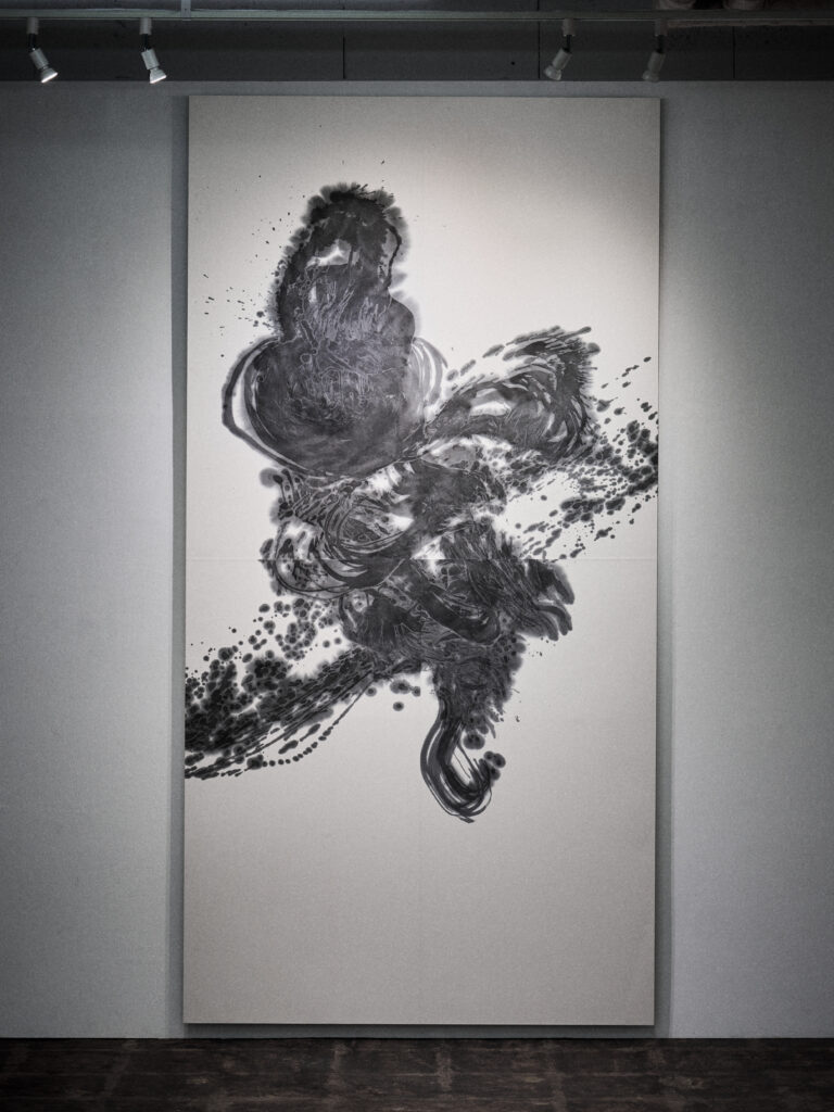 描かれた墨の色彩やかたちは単なる平面としてではなく立体として現れます。