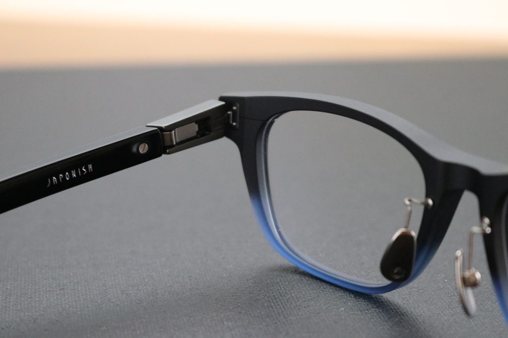 JAPONISM PROJECTION JP-050では、フロントにトロガミドを、テンプルにアセテートを使用。