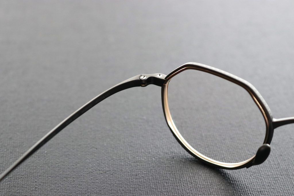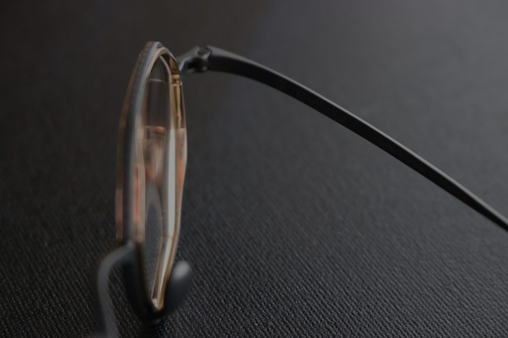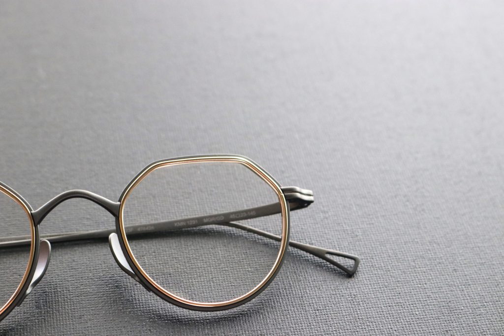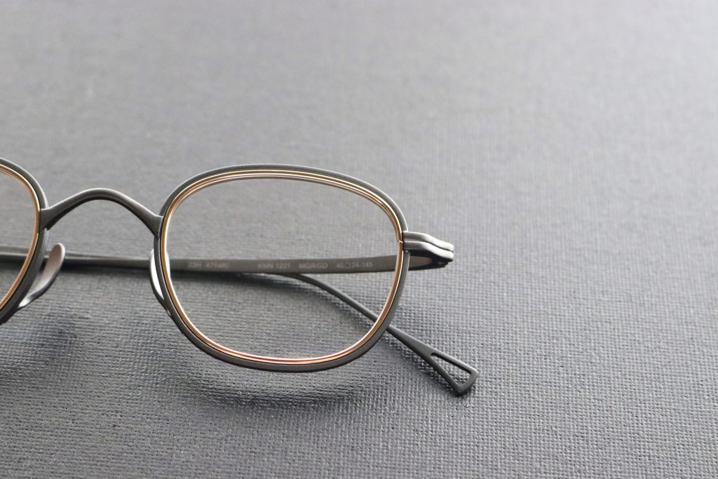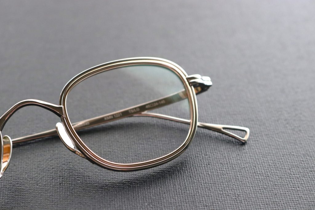 KMN 1221はレンズを留める枠には通称「強度リム」と呼ばれる厚みのあるリムを採用し、レコードに似たストライプ状のデザインが施されています。