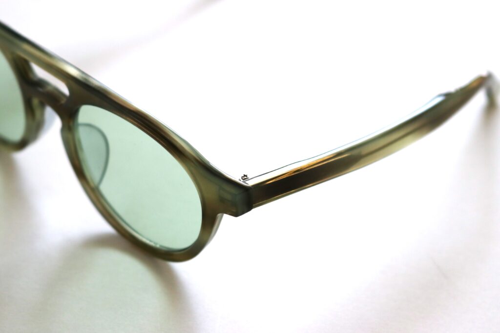国内ではナローな印象のためハードルの高さを感じてしまいがちなツー(ダブル)ブリッジのカテゴリーですが、掛けると一気に雰囲気を挙げてくれるこのタイプはメガネ好きなら一本は持っておきたいものです。