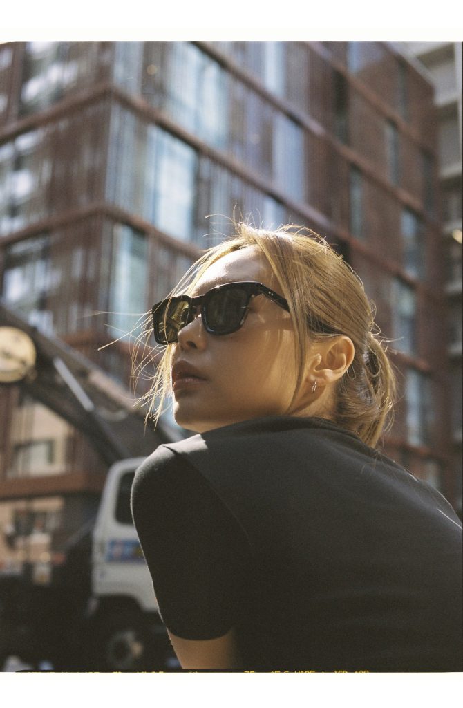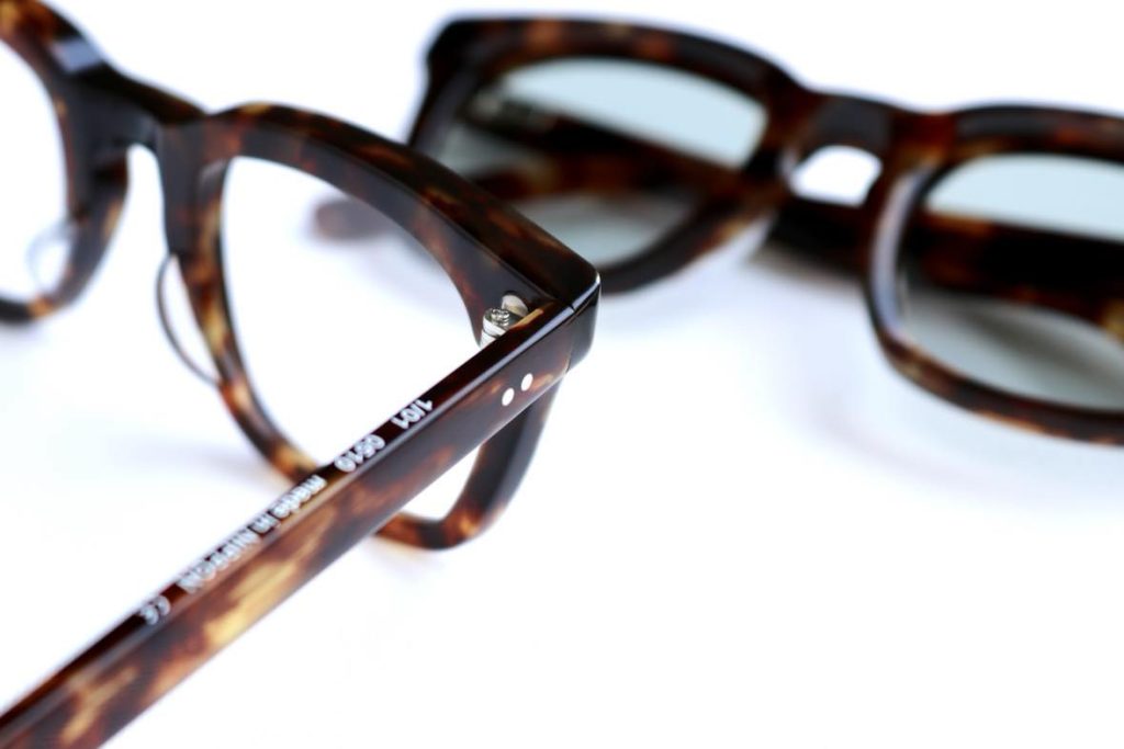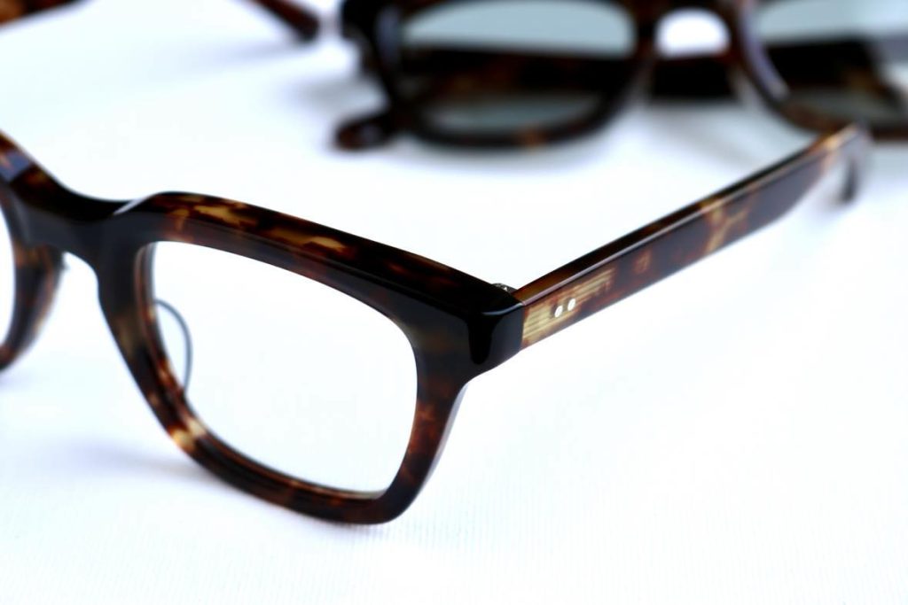 10mm生地を用いたアセテート製フレームは、2カーブベースレンズを装着するなど当時の野暮ったさを全く感じない“新しさ”を醸し出しています。