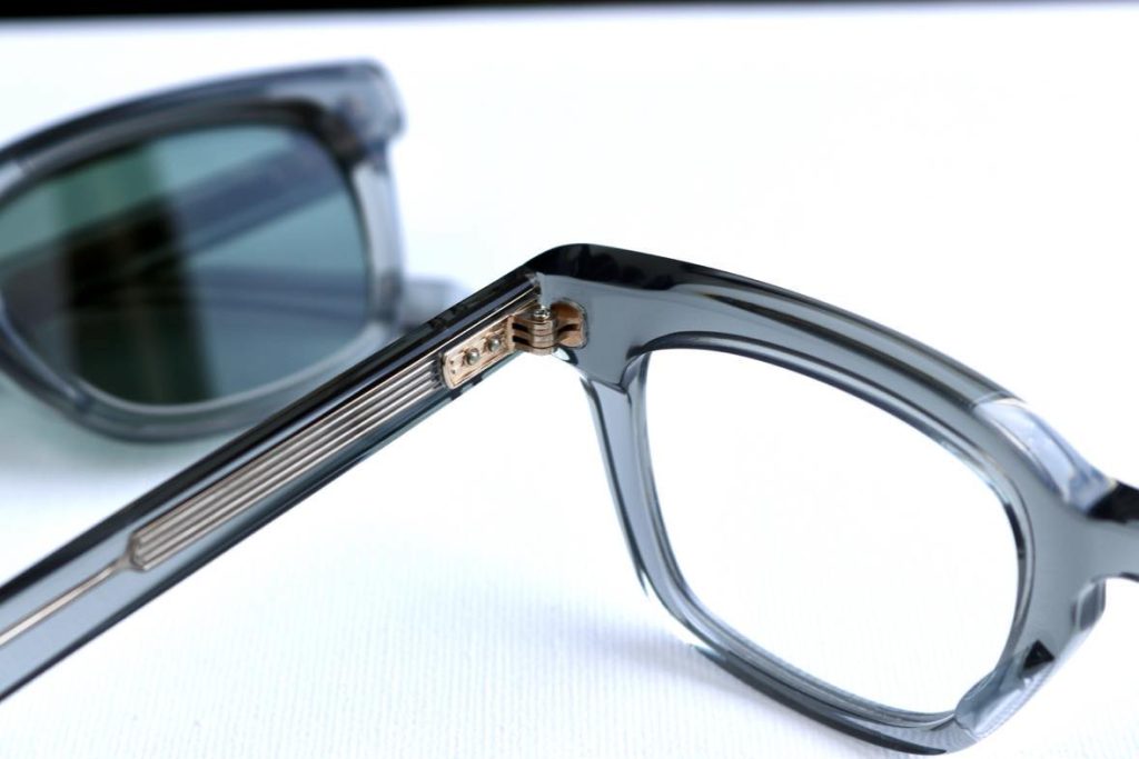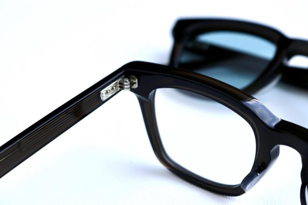 ウェリントンタイプのシェイプにテレビジョンカットと呼ばれることになる斜めにカッティングが入ったリムが立体的で特徴的な表情を作り出してくれます。