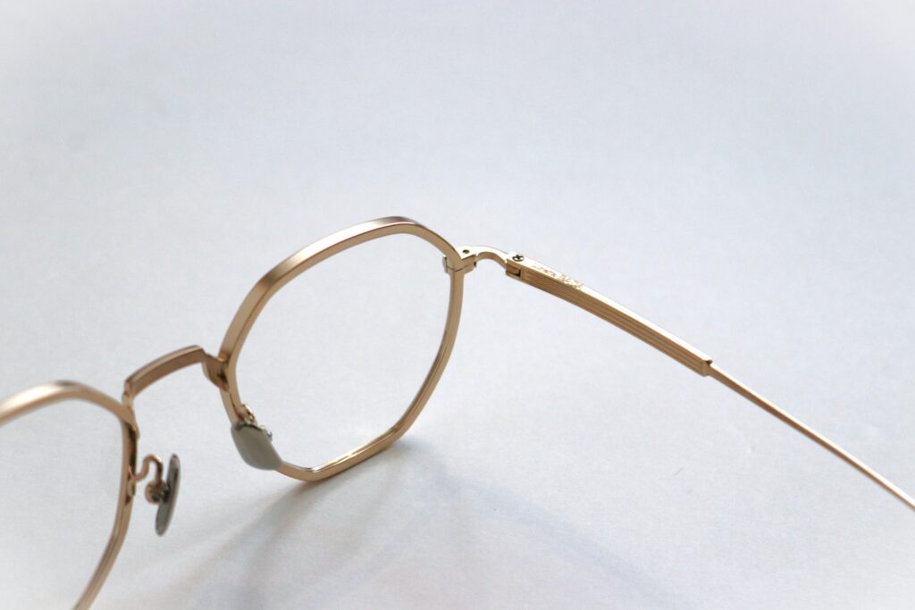 ブリッジとテンプルにはヘアラインのエングレービングが入ることでさり気なくも統一感あるデザインに仕上がりました。