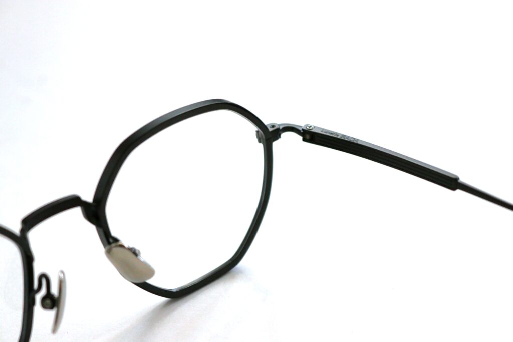 フレーム素材同様、ノーズパッドもチタン製になっており、何年使っても変色や劣化を防ぐ実用性と質感向上が図られ、また、βチタン製テンプルのほどよい弾力性は、掛け心地に加え歪みにくさにも繋がっていることで、デイリーユースにも快適な使用感をプラスされています。