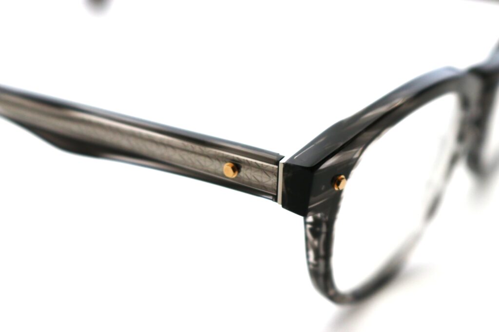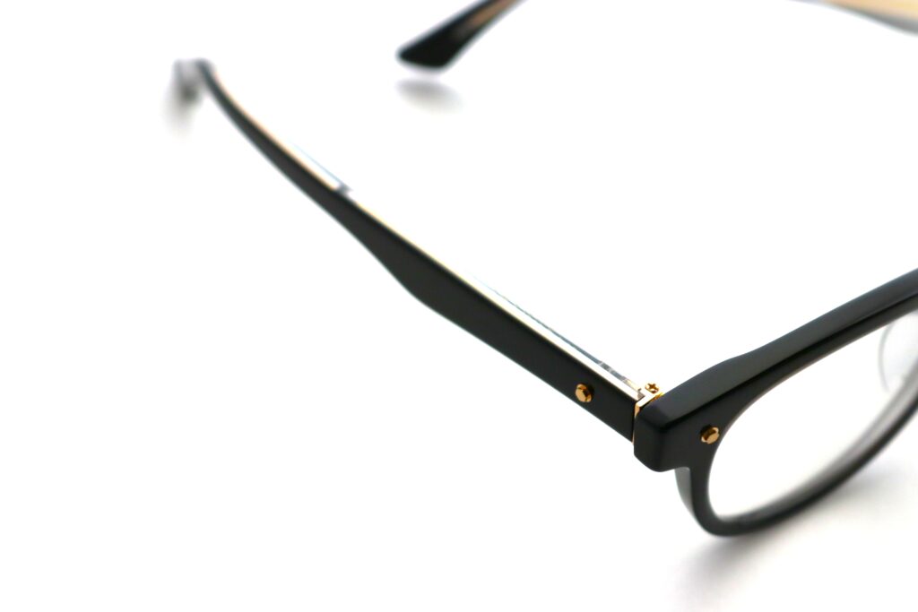 また、テンプル内の芯金には過去のマスナガ製フレームからインスパイアされたエングレービング加工が施され、掛けた際の横顔の美しさをより一層高めてくれます。