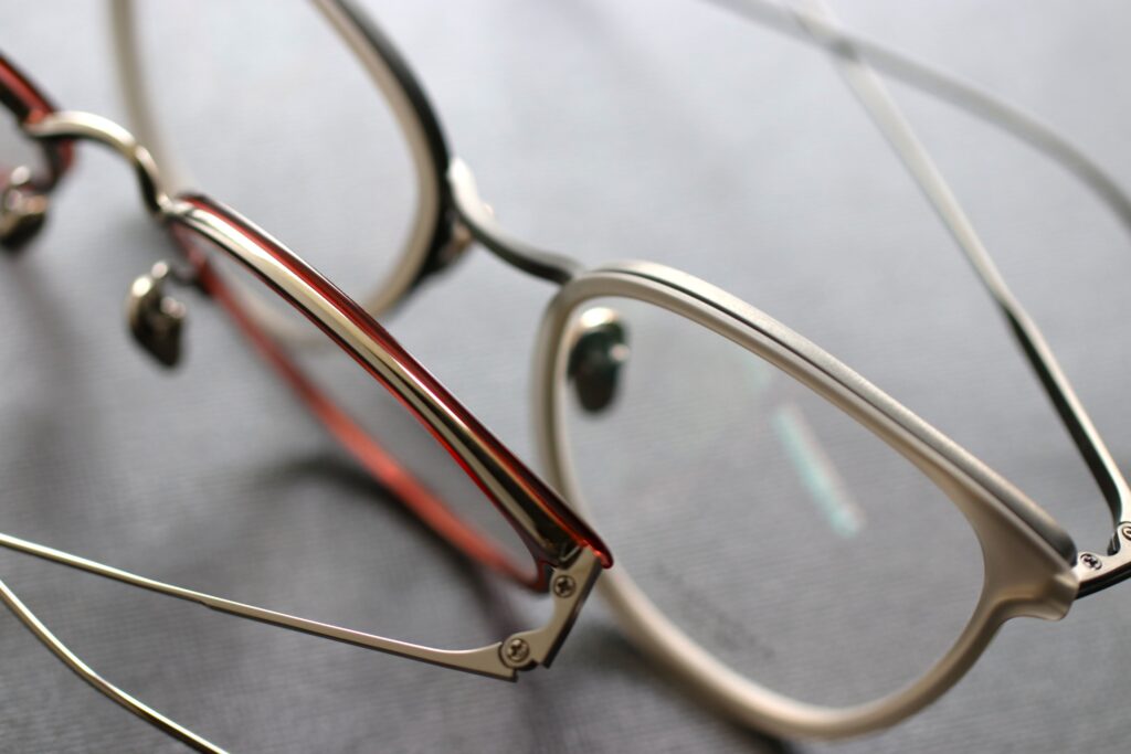 チタン製ノーズパッドは経年変化による色褪せや変色がなく、アレルギーフリーな安心感と衛生的な美しさが持続します。