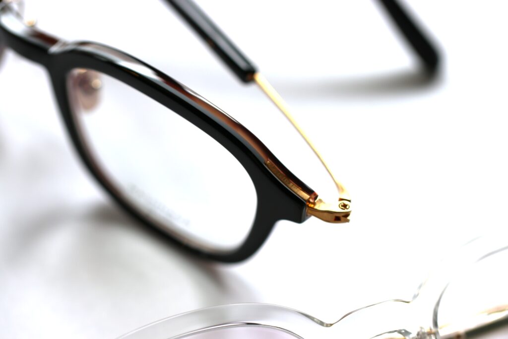 フロントのアセテートからテンプルのチタンのシルエットの変化も上品さとお洒落さが融合され、パーソナルに調整可能なクリングスタイプのチタン製ノーズパッドが標準装備。