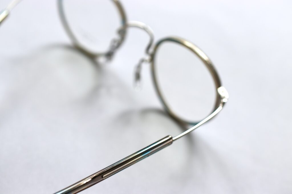 そのブリッジ、テンプル、リムにはエングレービング加工がなされ、ビンテージ感のあるディテールを醸しています。