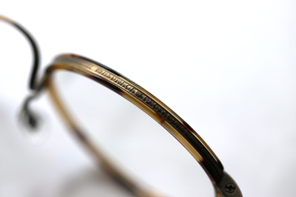 リムに施された彫金模様には「GOZAEMON MASUNAGA SPECTACLES」と、増永眼鏡創設者である増永五左衛門の名が刻まれています。