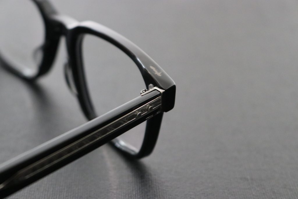 テンプル芯金に施されたエングレービング加工や丁番部のメタルパーツ、リム上部に配されたメタルアイコンなど、MATSUDAらしさを感じられるディテールにも注目です。