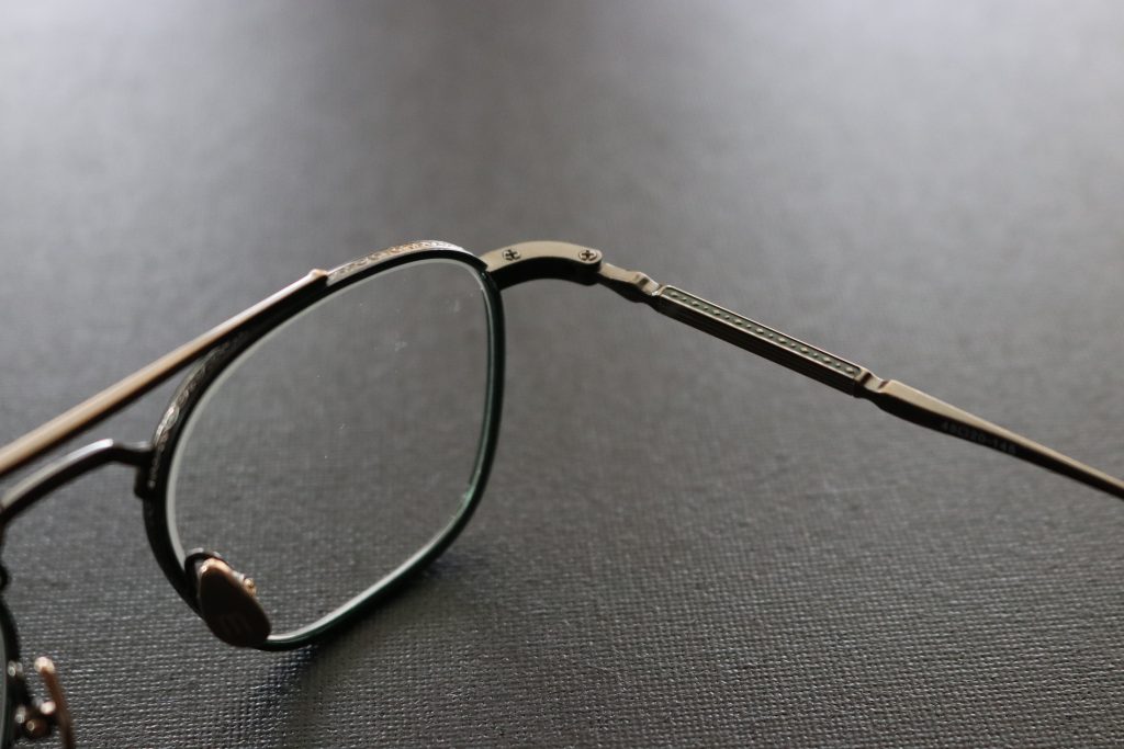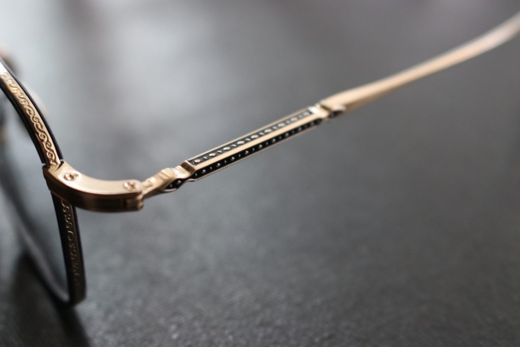 ブリッジ正面やリム側面、テンプルといった随所にエングレービング加工が施され、美しいディテールに魅了されることでしょう。