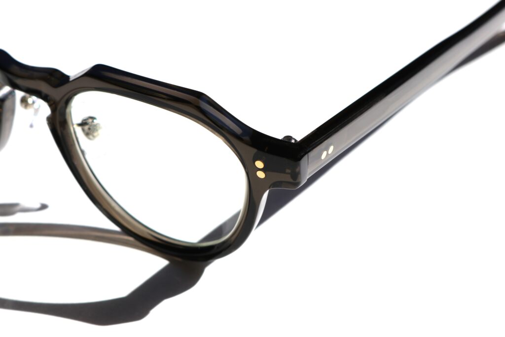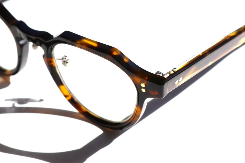 リムにはレンズに向かって斜めにカッティングが入った通称テレビジョンカットが施され立体感をプラス。