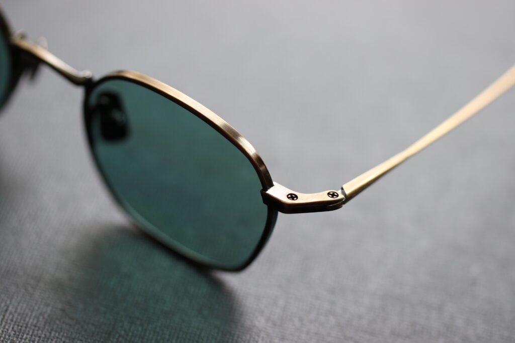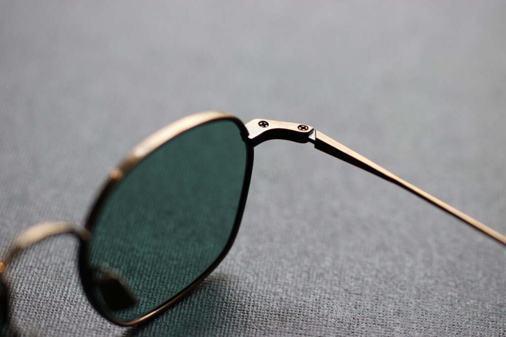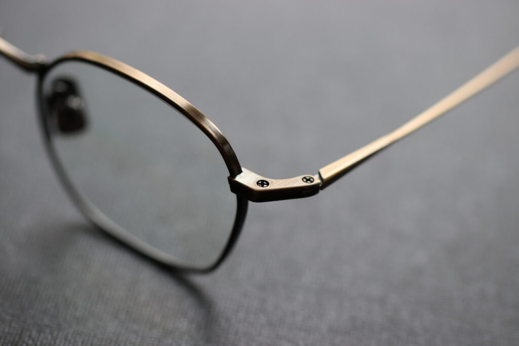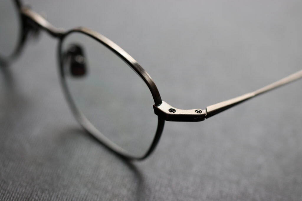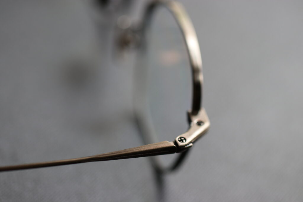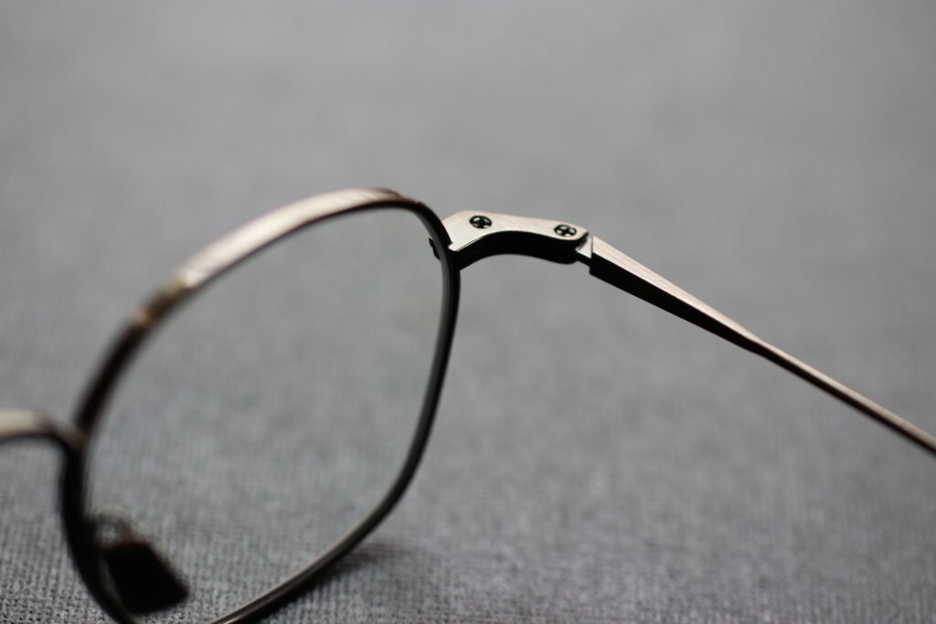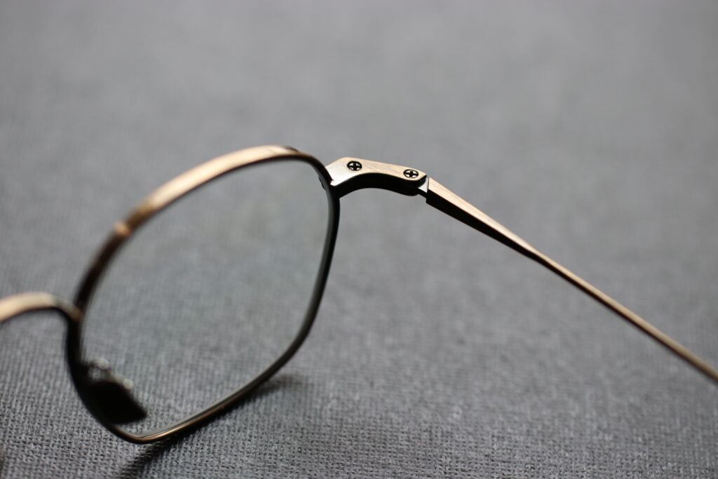 テンプルに採用されているβチタン素材は軽量性や防錆性だけでなく弾力性にも富んでおり、掛け心地や歪みにくさへ直接かかわる部分。