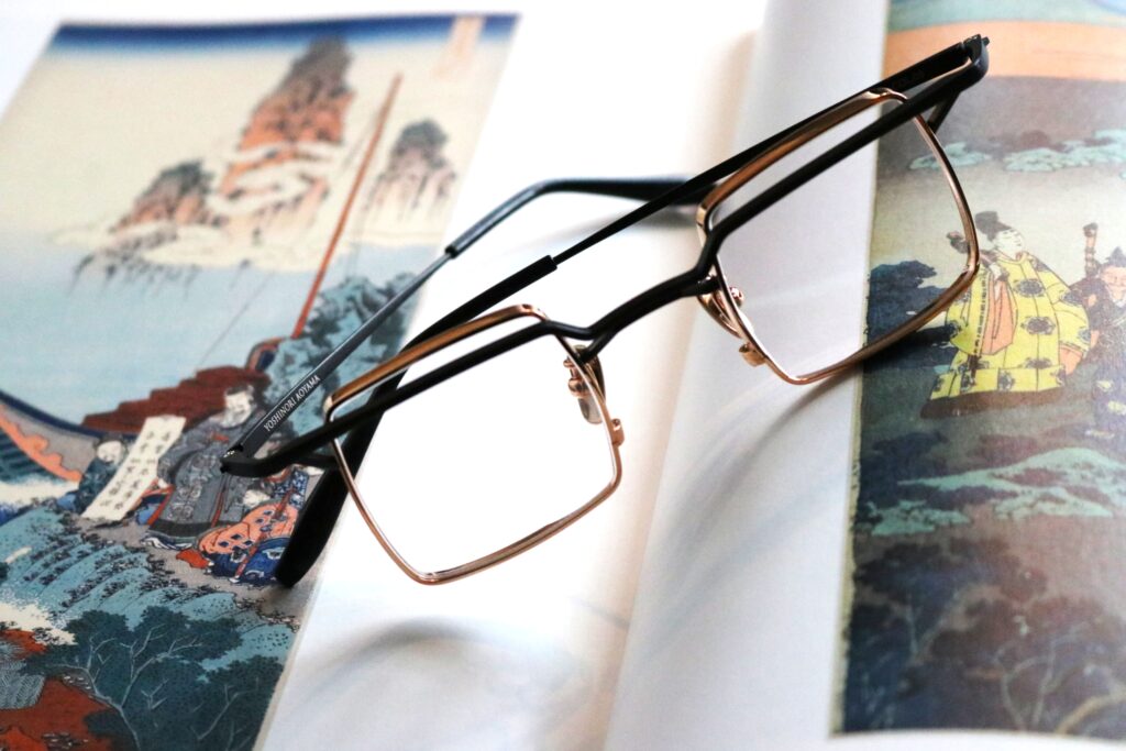 異なる二つのマテリアルから立体的な構造を創出する二刀流デザイナー青山嘉道氏によるアイウェアブランド「YOSHINORI AOYAMA ヨシノリアオヤマ」。