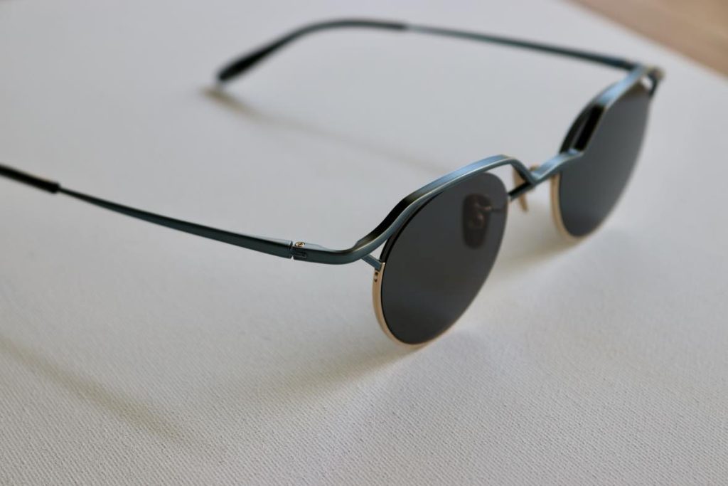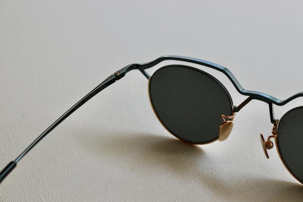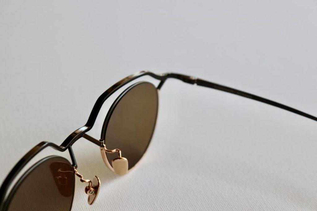 フレームのアッパーアウトラインはクラウンパントを表現し、内側のP3(ボストン)のレンズシェイプをブリッジとサイドから出ているピラーで支えられたリムで留めることで、前述のフローティングのような見られ方と立体感を演出。