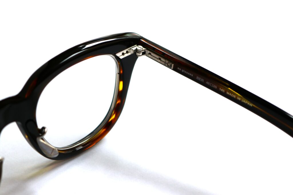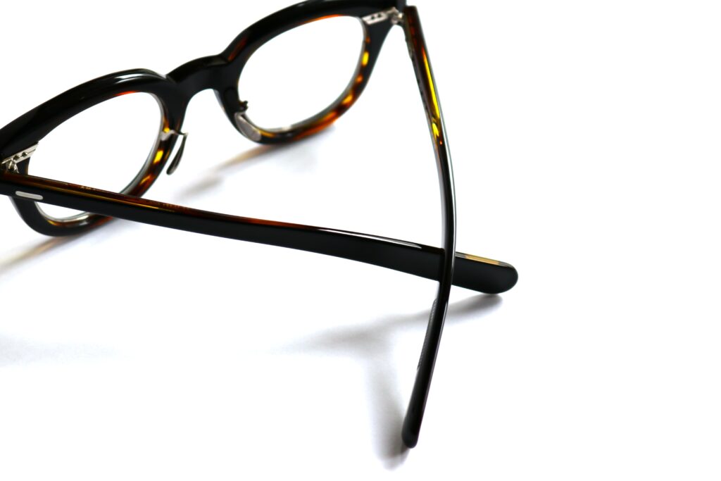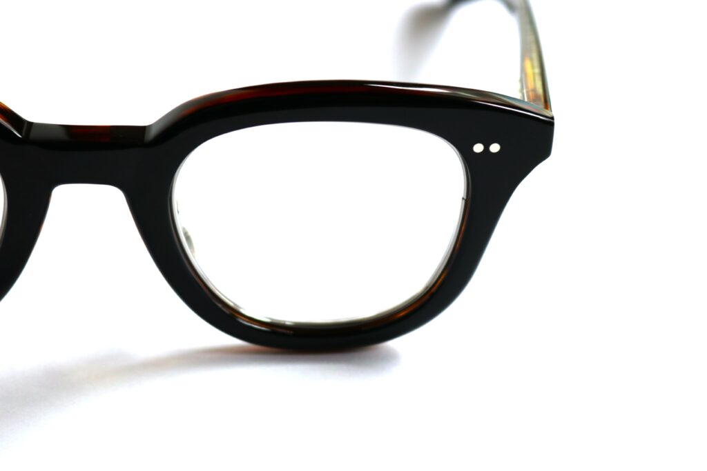 掛けた際の横のシルエットからのぞくデミカラーやテンプルに使用されている芯金がほどよく透けて見えることで、U-171 BERの存在感とエレガントさを合わせ持つ貴重なモデルとなっています。